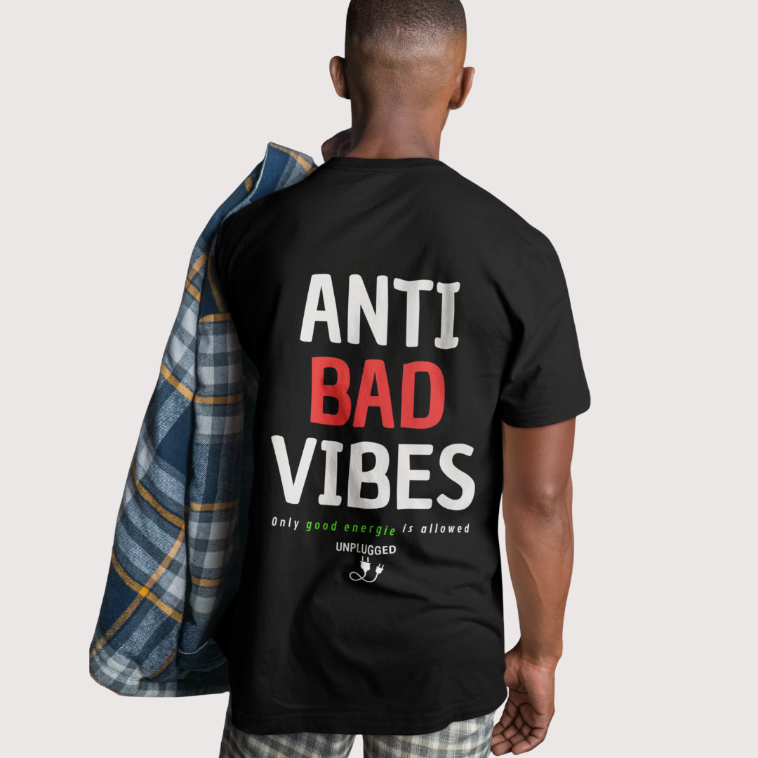 Maak een statement met dit originele Anti Bad Vibes T-shirt!