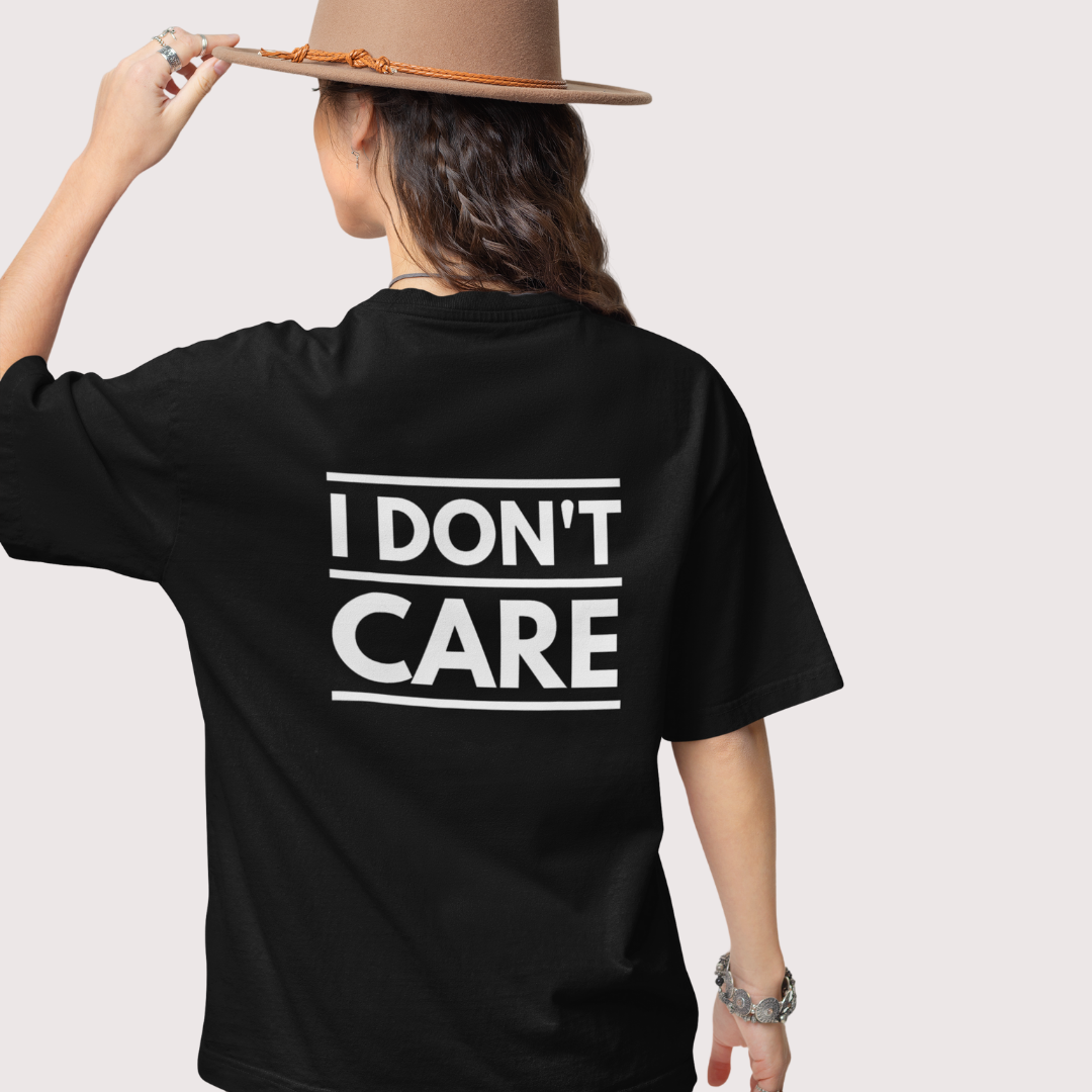 I DON’T CARE – en dat straal je uit met dit statement shirt. Stoer, duidelijk en comfortabel.