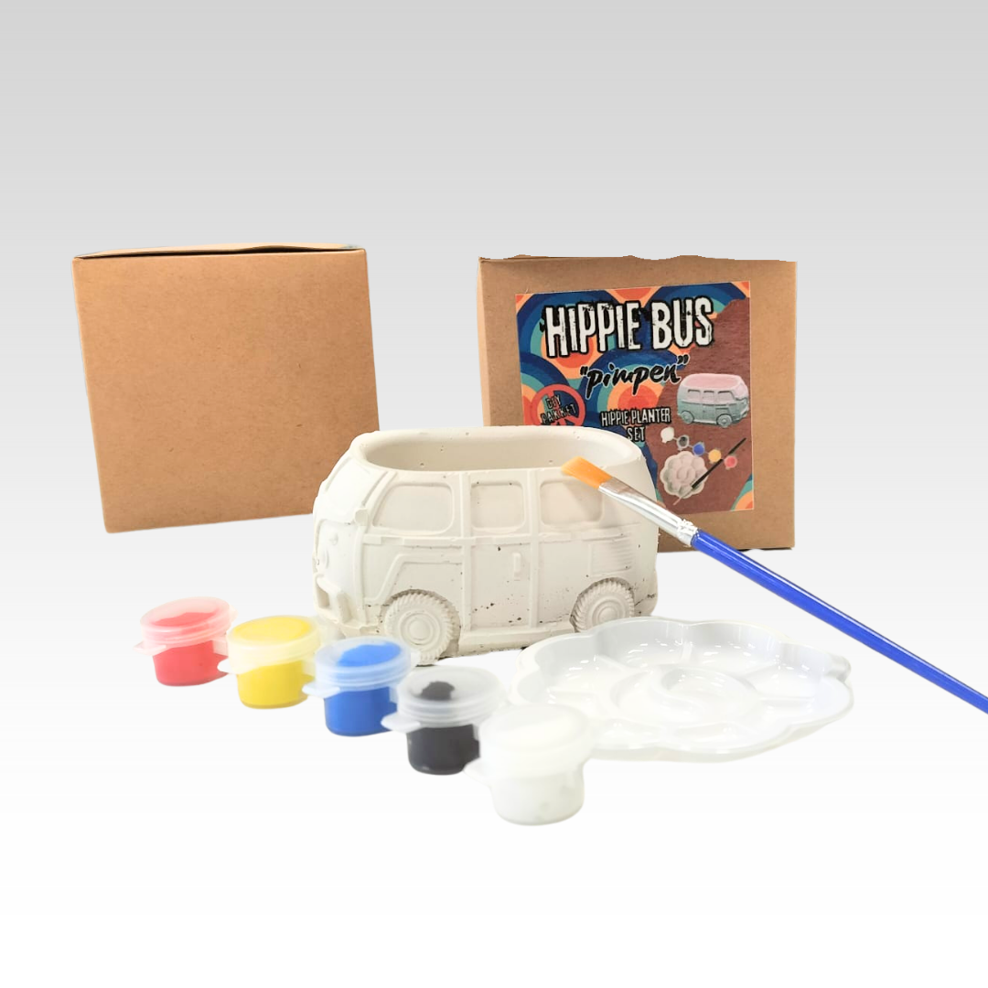 Laat je creativiteit stromen met dit vrolijke DIY-pakket! Met de Hippie Bus "Pimpen" set tover jij een blanco keramieken busje om tot een kleurrijke, unieke hippie planter. Perfect als decoratie voor je kamer, als origineel cadeau of als creatieve activiteit met vrienden of kinderen.