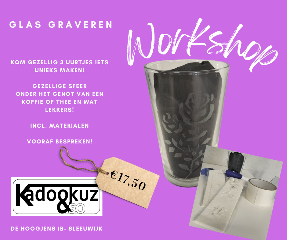 Altijd al willen leren glas graveren? Grijp nu je kans! In deze creatieve workshop ga je zelf aan de slag met een graveerpen om een uniek ontwerp in glas te zetten. Of je nu kiest voor een naam, een mooi patroon of een persoonlijke boodschap – jij bepaalt het design!