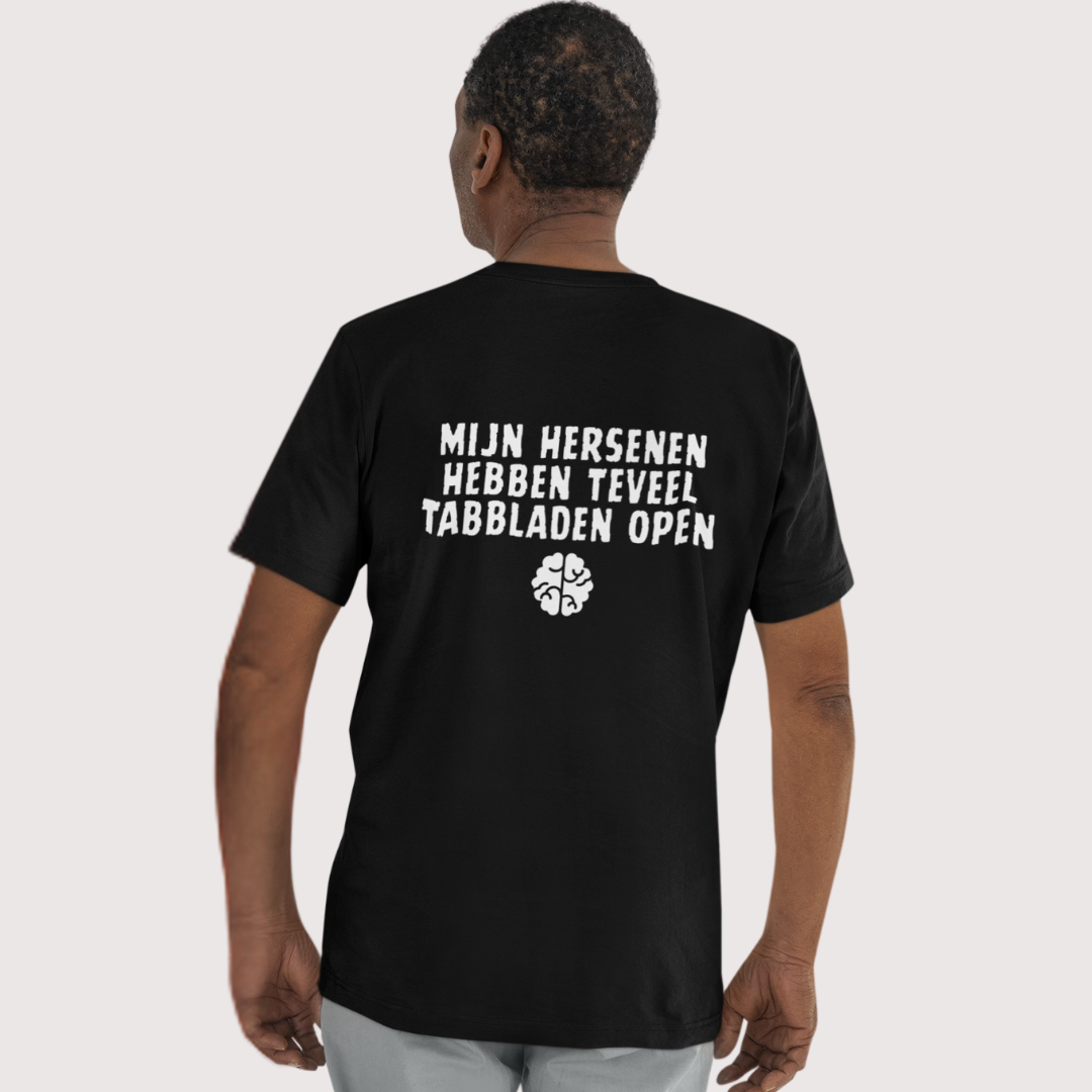Mijn hersenen hebben teveel tabbladen open – herkenbaar? Dit T-shirt is dé outfit voor drukke denkers.