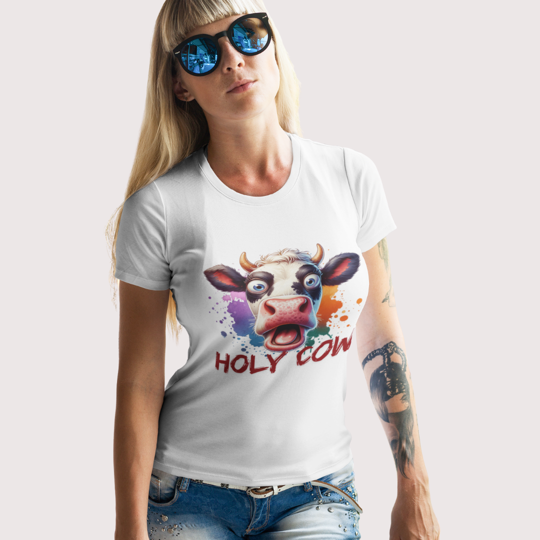 Holy Cow! – dit speelse T-shirt met kleurrijke koe is een echte eyecatcher vol humor.