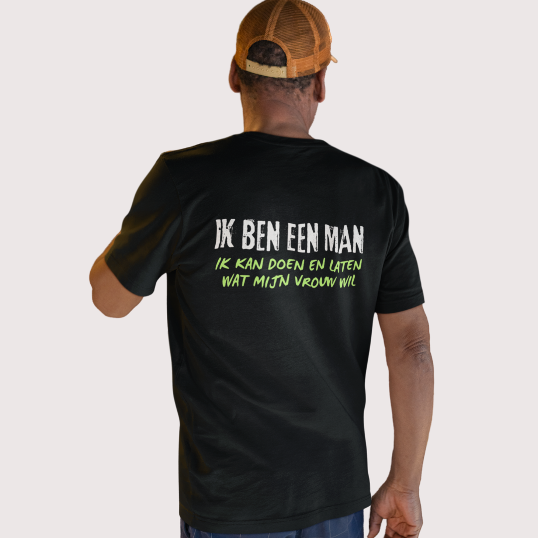Een humoristisch T-shirt voor de zelfbewuste man met zelfspot.