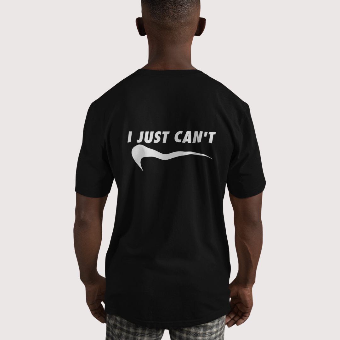 I Just Can’t – het ultieme T-shirt voor als je echt even nergens zin in hebt. Simpel, stijlvol en met een knipoog.