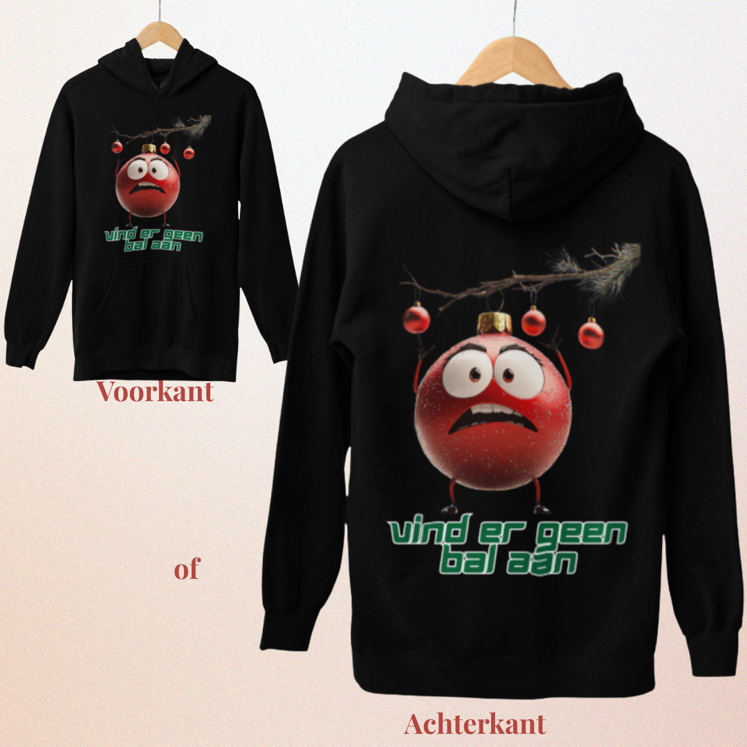 Comfortabel, warm en vooral hilarisch! Met de sippe kerstbal en de tekst “Vind er geen bal aan” ben jij klaar voor elke foute kerstborrel of familieavond.
