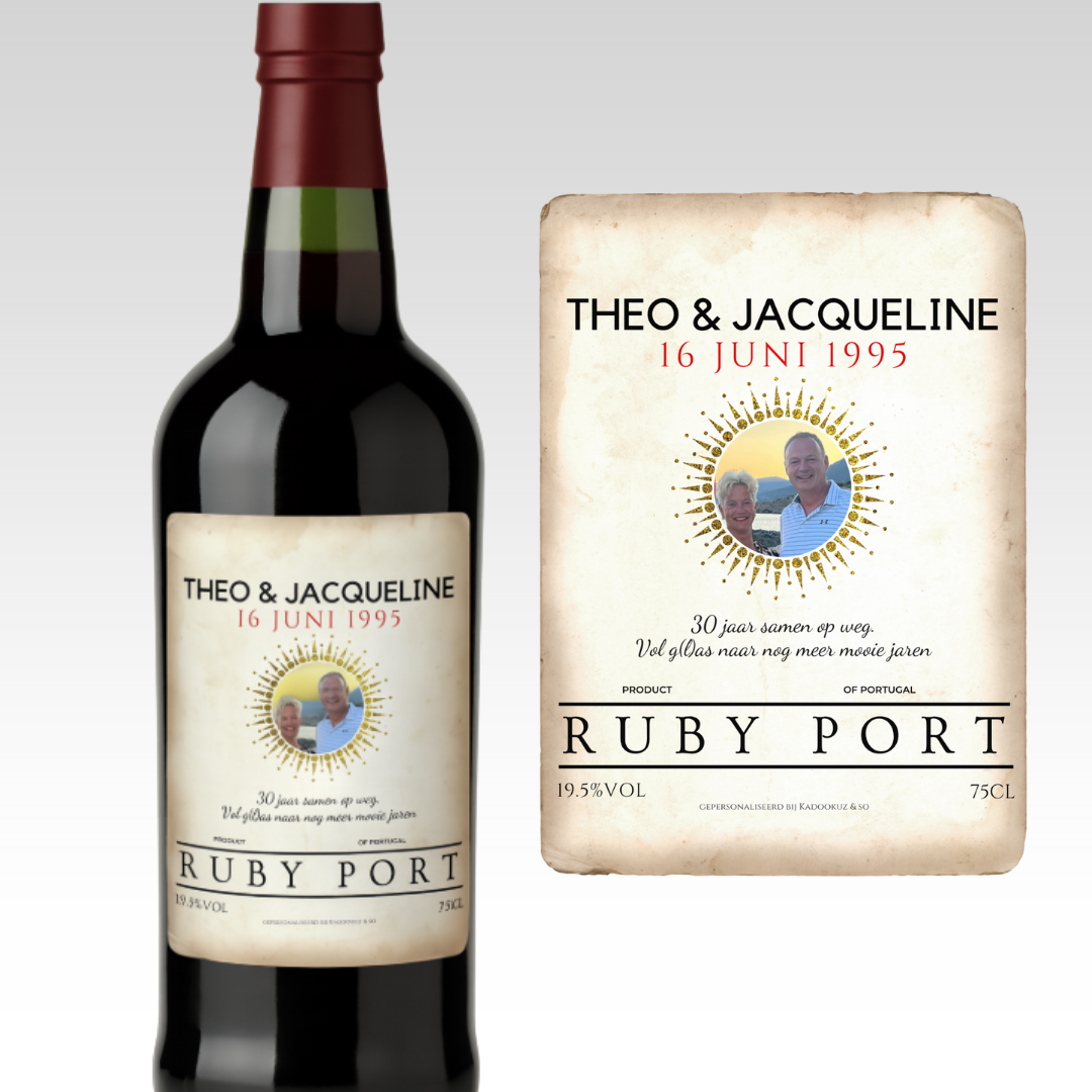 Verras iemand met een unieke fles wijn of port met een volledig gepersonaliseerd etiket. Van jubileum tot verjaardag of als relatiegeschenk – jij levert de foto en tekst, en wij ontwerpen een stijlvolle, luxe uitstraling die perfect past bij het moment. De fles wordt compleet geleverd, klaar om te geven!