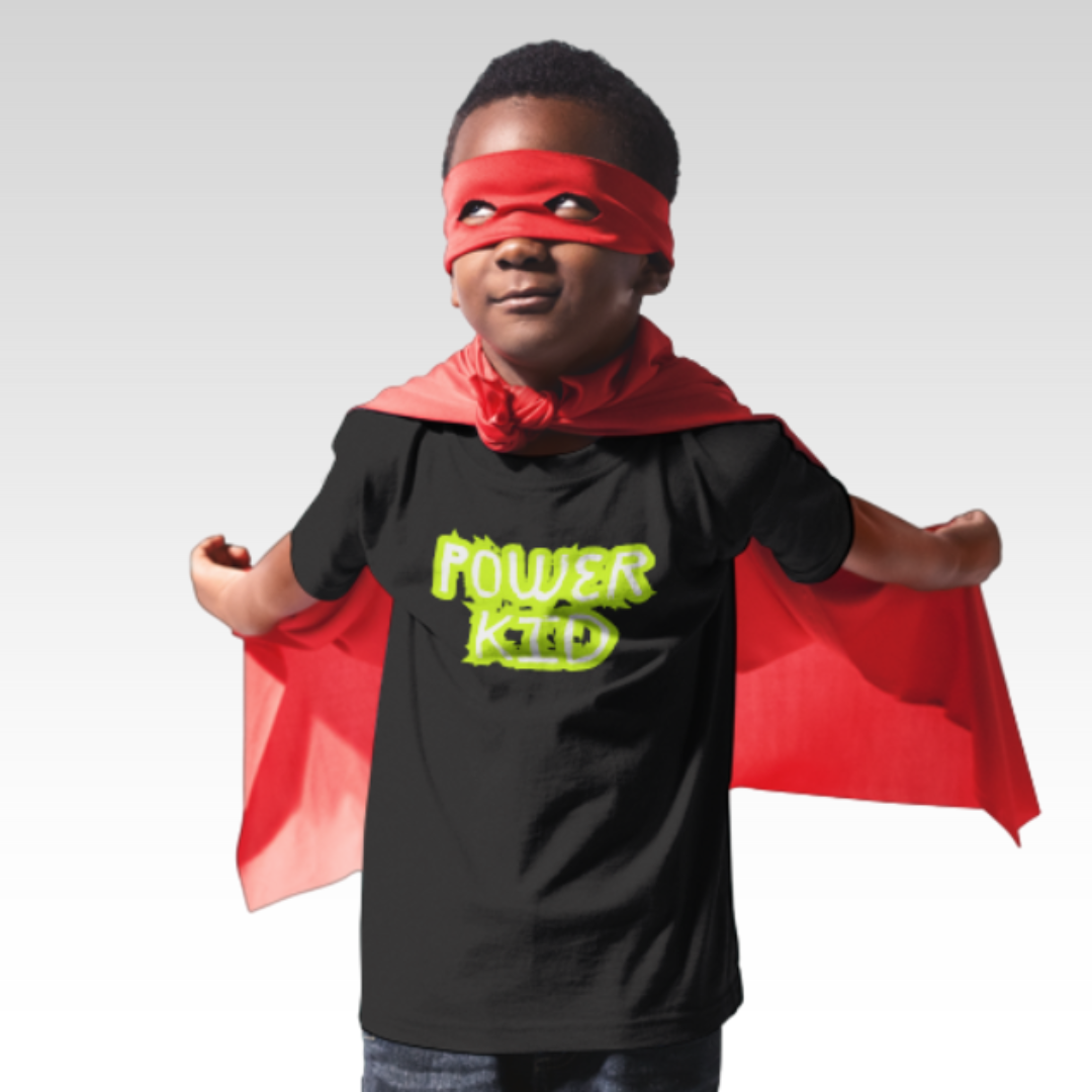 T-shirt met de tekst "Power Kid" voor onze echte superhelden.