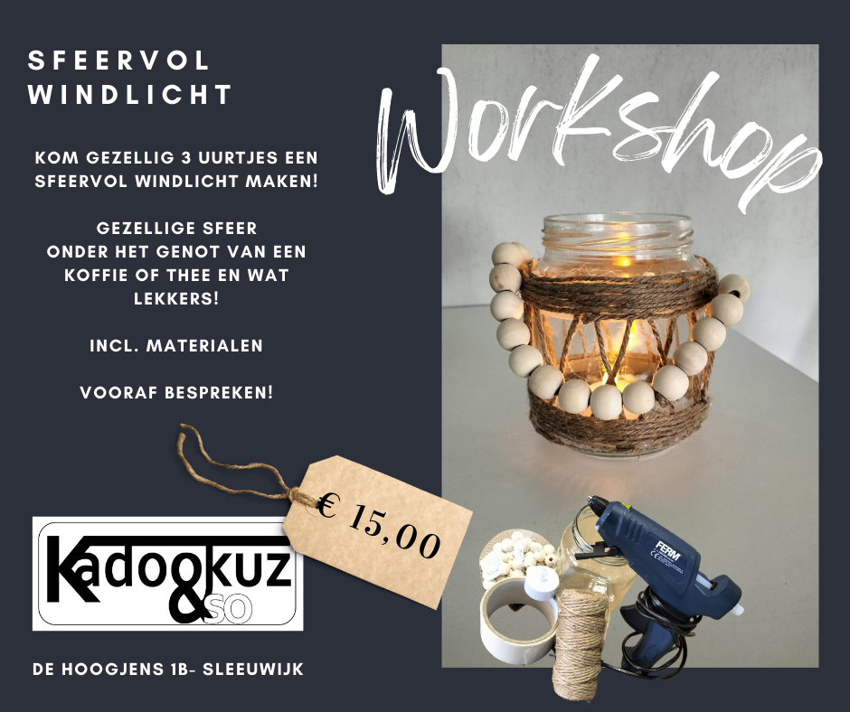 Wat is er leuker dan zelf een sfeervol windlicht te maken? Tijdens deze creatieve workshop word je professioneel begeleid in een gezellige sfeer. 🎨💡
